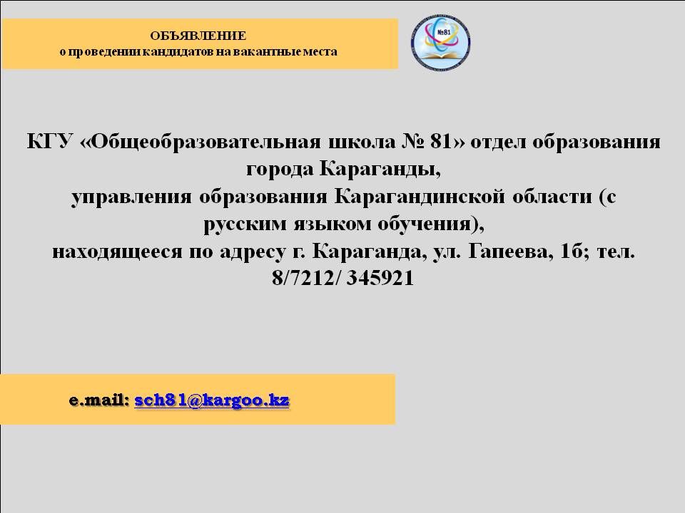 КГУ «Общеобразовательная школа № 81» отдел образован…