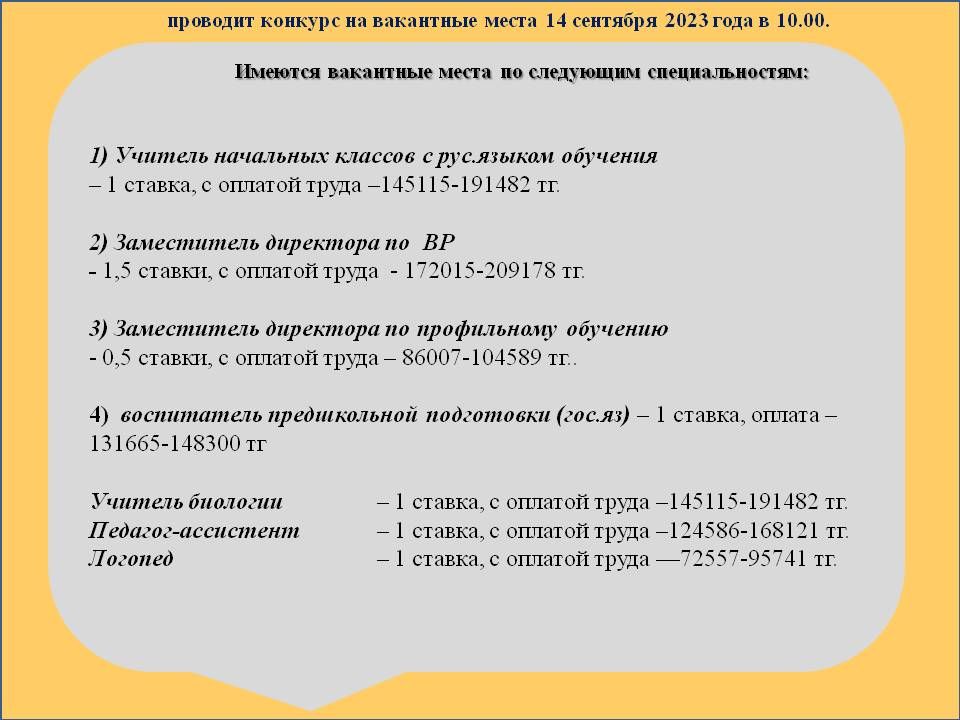 Объявление о проведении кандидатов на вакантные места