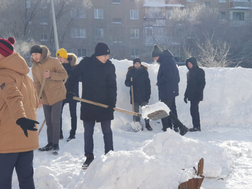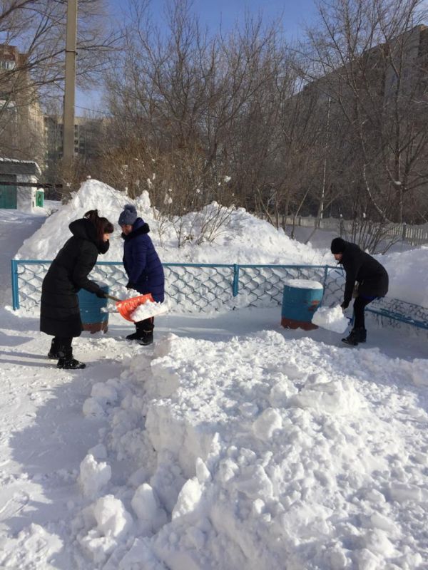 Сегодня в КГУ "СОШ№81" проводится субботник по уборке снега