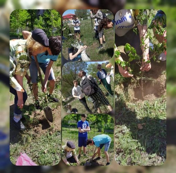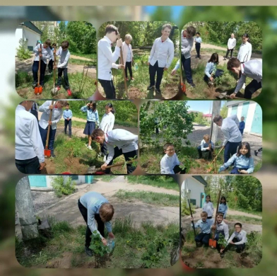 21 мая 2022 года. Ученики 11 "А" класс, приняли активное участие в посадке саженцев на пришкольном учаске.