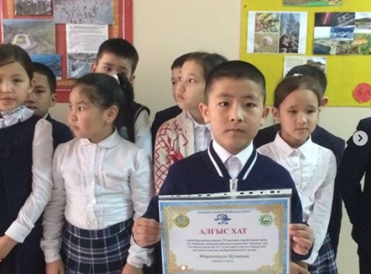 А.Құнанбайұлының 175 жылдық мерейтойына орай Әл-Машани мешітінің ұйымдастыруымен қара өлең оқу байқауына қатысып өлең оқу шеберлігімен көзге түскені үшін 2 "Ж" сынып оқушысы Конкишев Қуанд…