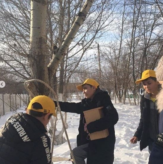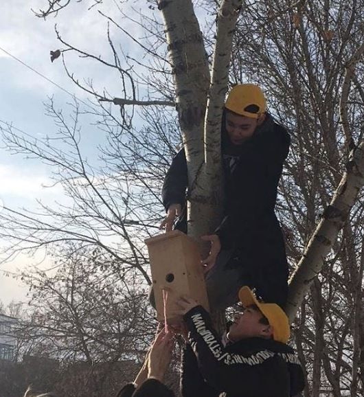 " Жас волонтеры" 7Д класса своими руками смастерили скворечники и повесили на деревья.