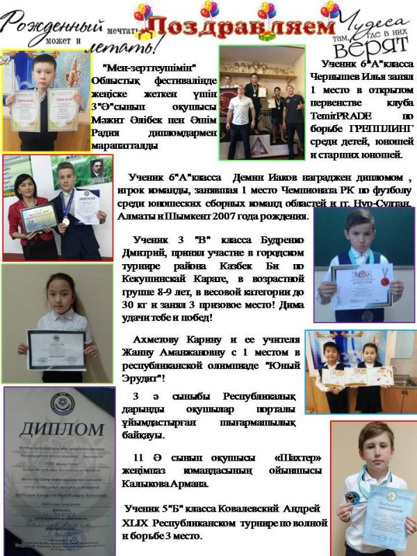 5"Б" сынып оқушысын құттықтаймыз. Өмір бойы жеңімпаз болып қала берсін және үнемі жеңістер мен жоғары марапаттарға ұмтылуға тілектеспіз.