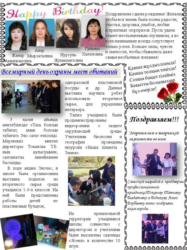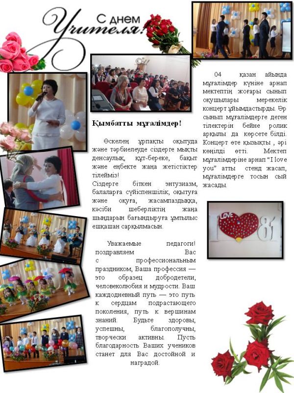 "Әсемдік әлемінің құдіреті" атты сайыстан 1 орынға ие болған бейнелеу өнері және сызу мұғалімі Куанбаева Арайлым Абайбековнаны құттықтаймыз! Еңбегі жемісті болып, тек жоғарыдан көріне беру…