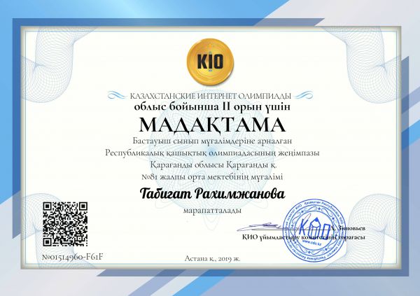 Бастауыш сынып мұғалімдері арасында ҚИО республикалық қашықтық олимпиадасының жеңімпаздарын құттықтаймыз.