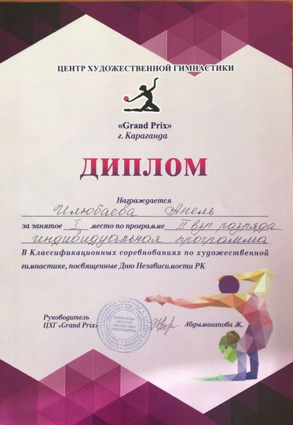 6 "Б" сынып оқушысы Илюбаева Анельді көркем  гимнастика бойынша біліктілік жеке бағдарламадан І орын алғаны үшін  құттықтаймыз!