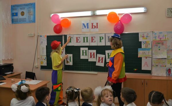 1 "А" сыныбында "Біз қазір жай балалар емеспіз, біз оқушымыз" атты мереке болып өтті. Оқушылар ән айтып, би биледі. Ата-аналар белсенділік танытты. Мерекеге "Семицветик"…