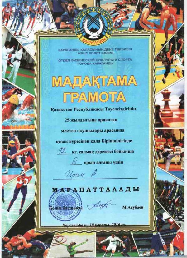 «Қазақстан ұстаздары» қоғамының ұйымдастыруымен «Бастауыш сыныптар» пәні бойынша республикалық қашықтық олимпиадасына қатысып, жоғары көрсеткіштерді көрсетіп, 1 дәркжкл…
