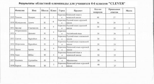 №81 ЖББОМ 4-6 оқушыларына арналған "Clever" облыстық олимпиадасына қатысқаны үшін құттықтаймыз.