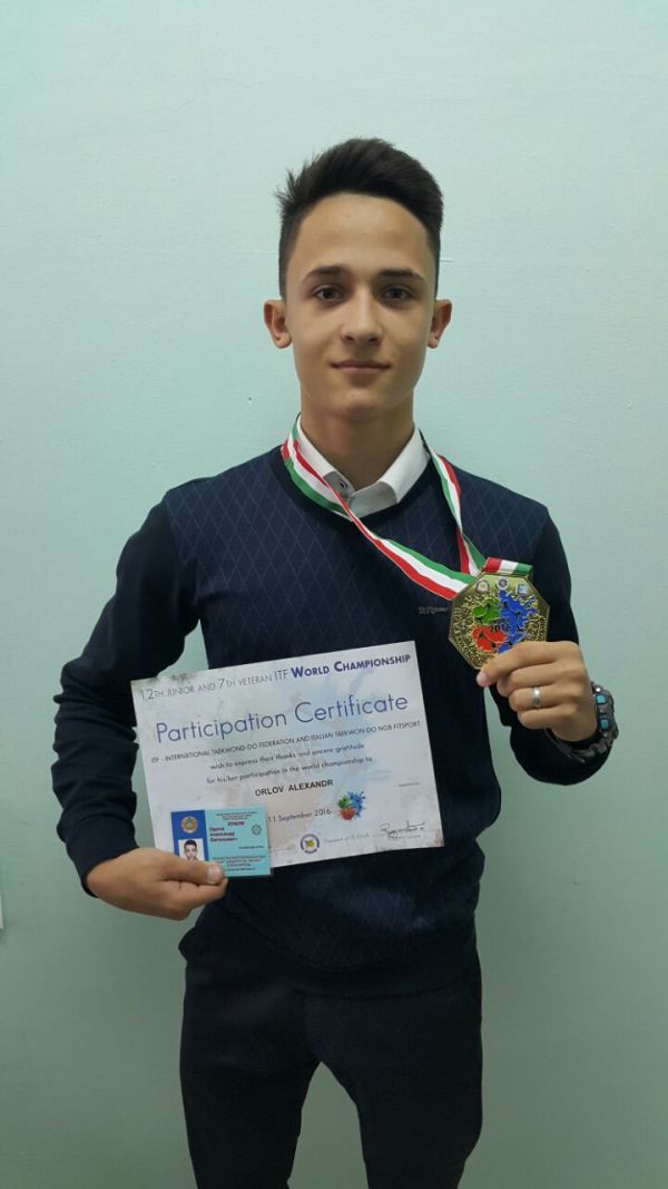 2016 жылдың 5-12 қыркүйек аралығында Италияның Андрия қаласында жасөспірімдер арасында таэквондодан әлемдік чемпионаты болып өтті. Спорт шеберіне үміткер мектебіміздің оқушысы Орлов Александр…