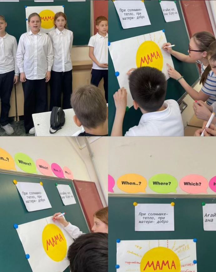 13 мая в 5 «Б» классе прошел классный час на тему «День матери». Ребята вспомнили пословицы и поговорки на двух языках, составили кластер, в котором выразили словами свои теп…
