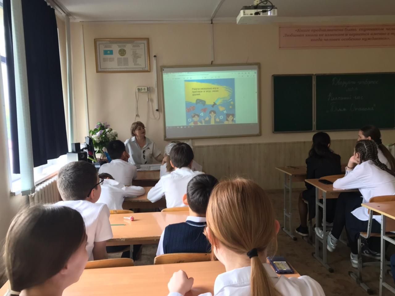 24 мая 2024 года  в 6 "В" классе состоялся торжественный классный час, посвященный окончанию учебного года.  Были подведены итоги года. Впереди экзамен по казахскому языку. Уда…