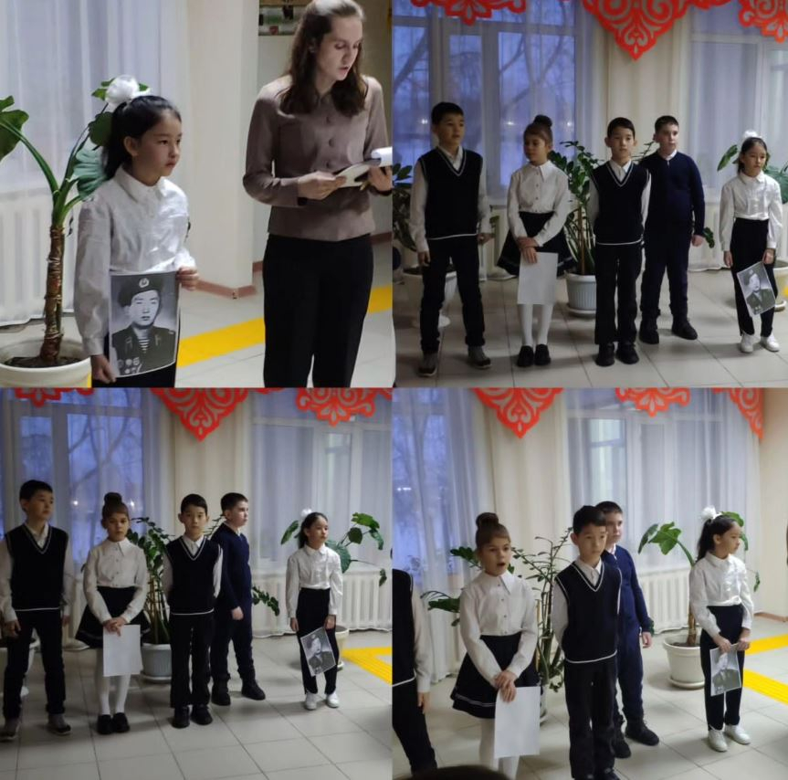 12 февраля 2024 года учащиеся 3В класса подготовили линейку на тему: Наш земляк - воин Афганистана. Рассказали о Калмагамбетове А.Ш. Кл.руководитель: Джур О.Ю.