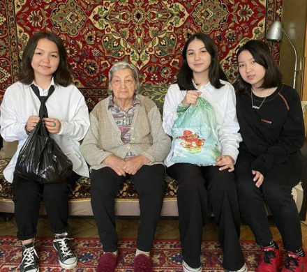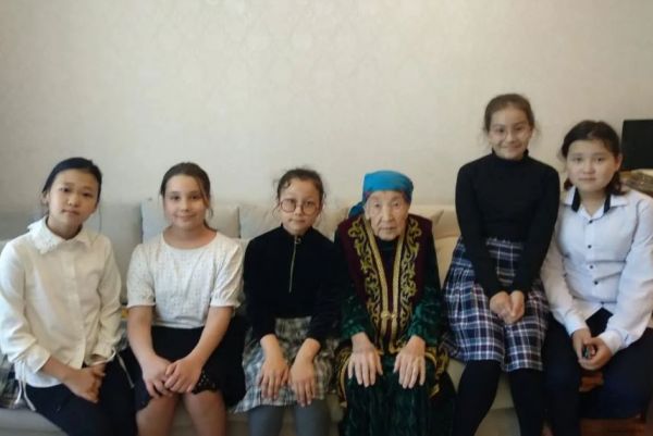 Ученики 4Б класса поздравили труженицу тыла Фуйзуллину Зайтуну Гильмутдиновну. Ей исполнилось 91год.