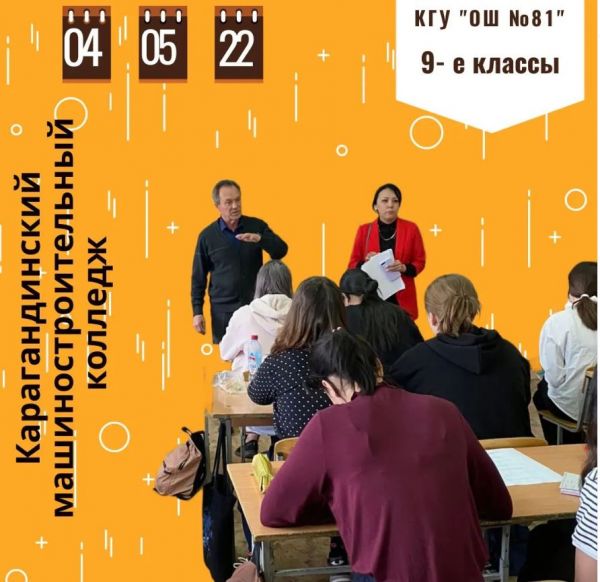 04 мая 2022г. В КГУ «ОШ №81» состоялась профориентационная встреча учащихся 9-х классов с представителями Карагандинского машиностроительного колледжа.