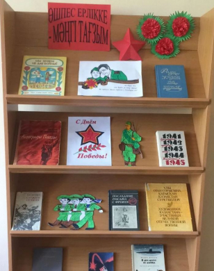 В школьной библиотеке организована книжная выставка « Өшпес ерлікке мәңгі тағзым »