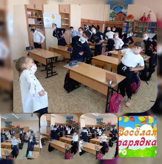 Ученики 4Б класса проводят зарядку для поддержки здоровья и сил на целый день.