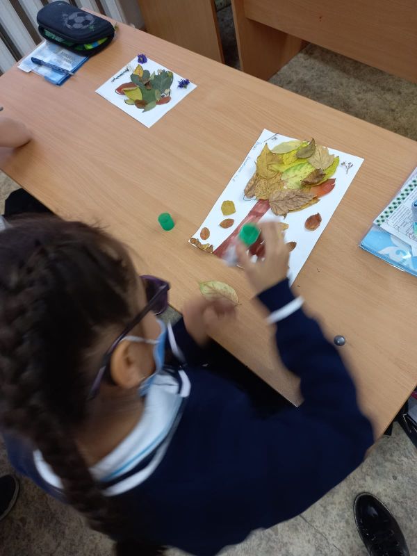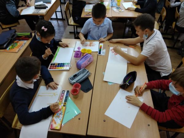 13.10 в 4 "А" классе ОШ N81 в рамках Недели эстетической грамотности проведен урок-игра "Цветы и листья" с целью развития творческих способностей учеников.