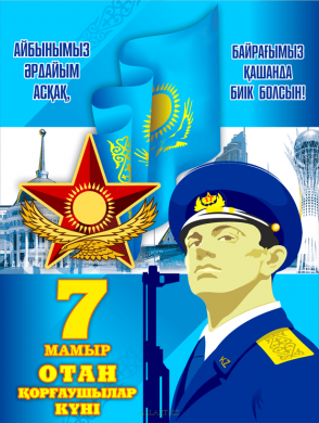2 "Ә" сынып жетекшісі Шолпан Сатыбалдықызы ,ата-аналары мен оқушыларының "7-мамыр Отан қорғаушылар күні" мерекесіне арналған құттықтаулары