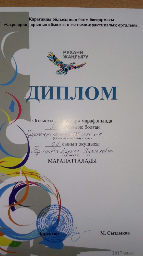 4 ә сынып оқушылары "Ақбота" интеллектуалды марафонда 3 орын алғандары үшін құттықтаймыз!