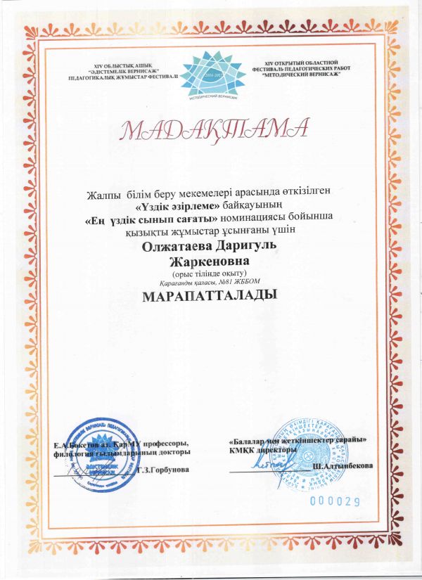 8 сынып оқушысы Омарова Махабатты "Star-2016 Республикалық конкурсында "көркем сөз" номинациясы бойынша ІІ орын алғаны үшін құттықтаймыз.