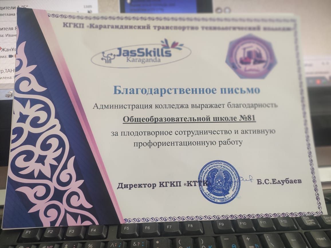 15 апреля 2024 учащиеся 9 Г класса участвовали в региональном чемпионате профессионального мастерства «JasSkills» в Карагандинском транспортно-технологическом колледже, по компетенции &l…