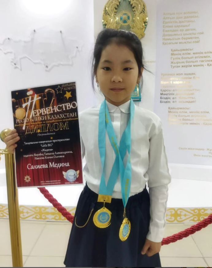 Поздравляем ученицу 3 Г класса Салиеву Медину с республиканскими достижениями в танцевальном конкурсе в г. Алматы.