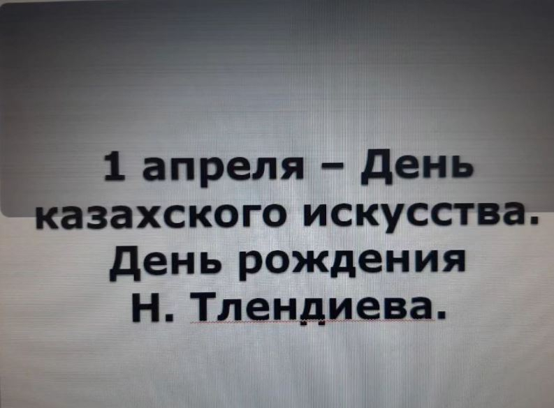 "1 апреля - День казахского искусства. День рождения Н.Тлендиева".