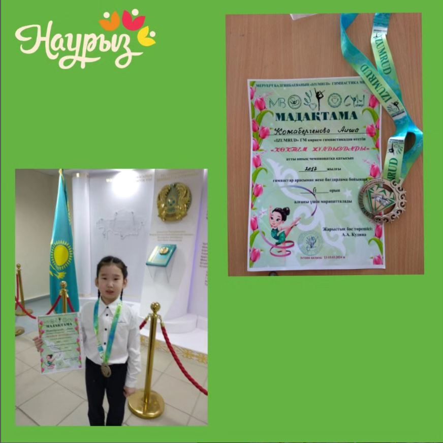 Ученица 1 "В" класса Кожабергенова Аиша участвовала в открытом чемпионате по художественной гимнастике "Звёзды весны" и завоевала 2 место.