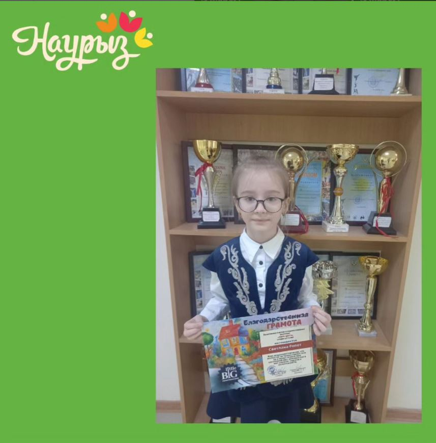 Поздравляем ученицу 2 "А" класса Позднякову Анастасию за занятое I место в Республиканской олимпиаде АКБОТА!