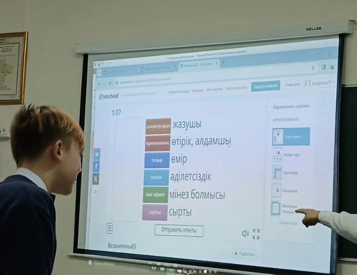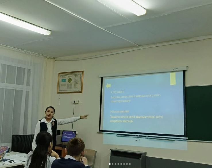 17.01.2024ж Қазақ тілі мен әдебиетінен 8 "В' сыныбында "Тәкен Әлімқұлов-шебер жазушы" тақырыбында ашық сабақ өтті. Сабақта оқу сауаттылығына негізделген тапсырмалар, ұлттық ойында…
