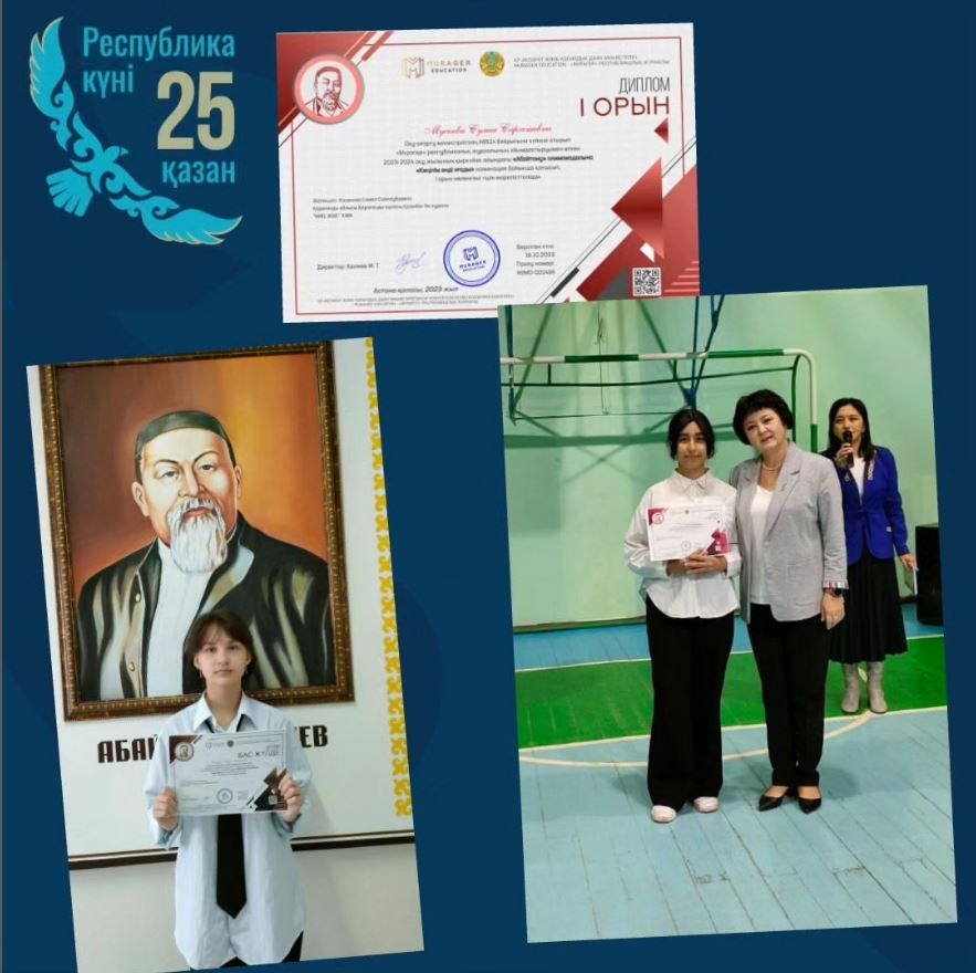 "Мұрагер" республикалық журналының ұйымдастыруымен өткен 2023-2024 оқу жылының қыркүйек айындағы "Абайтану" олимпиадасында "Абай бейнесі"номинациясы бойынша 9"Г&qu…