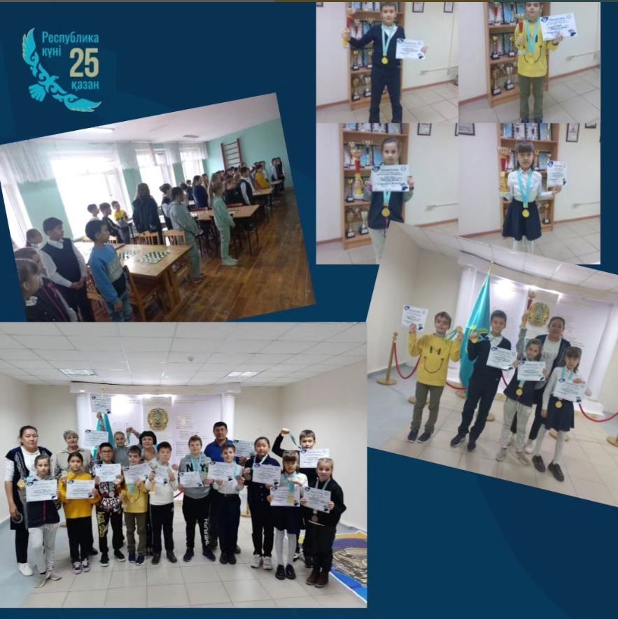 В нашей школе ко дню Республики прошли городские соревнования по шашкам "64" среди 4-5 классов. Приняли участие 14 школ города.
