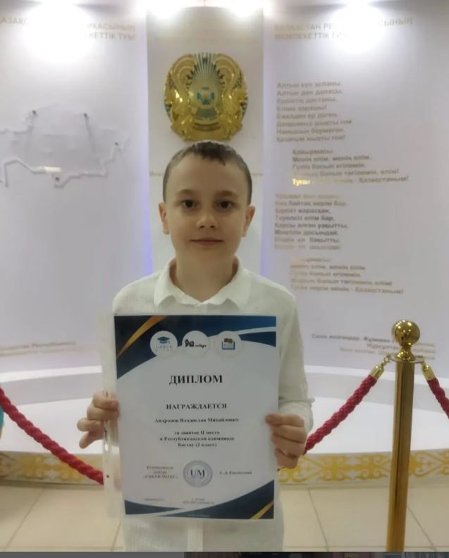 Поздравляем ученика 2 Г класса Андронова Владислава за занятое второе место в Республиканской олимпиаде "Бастау".