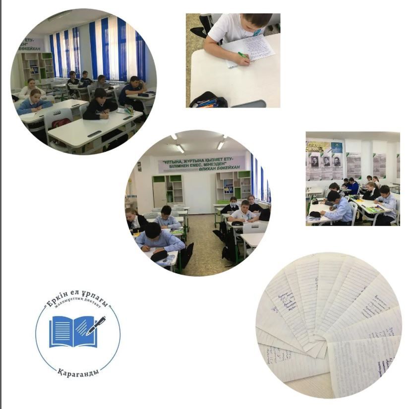 4 мамыр күні 6-шы сынып оқушылары "Еркін ел ұрпағы" тақырыбы бойынша жалпыұлттық диктант жазды. Пән мұғалімдері: Қ. Қ. Абдиманова. Абылкасова. Г. М.