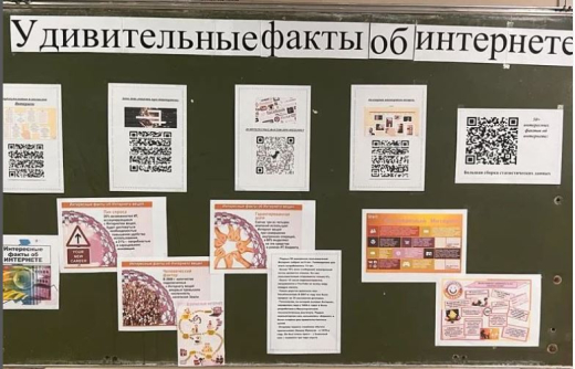 В рамках недели цифровой грамотности в фойе школы учителями информатики Рукиной Т.А. и Султанбековой А.М. оформлен стенд с QR на тему «Удивительные факты об интернете». С помощью QR можн…
