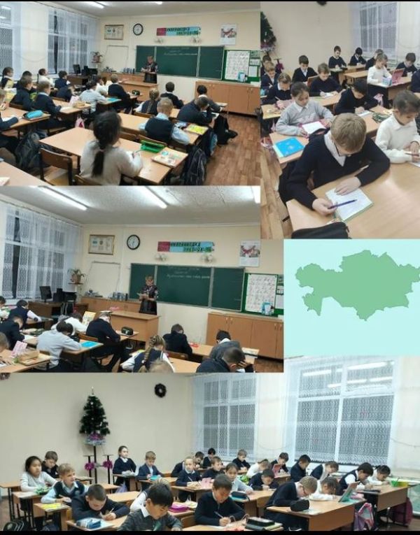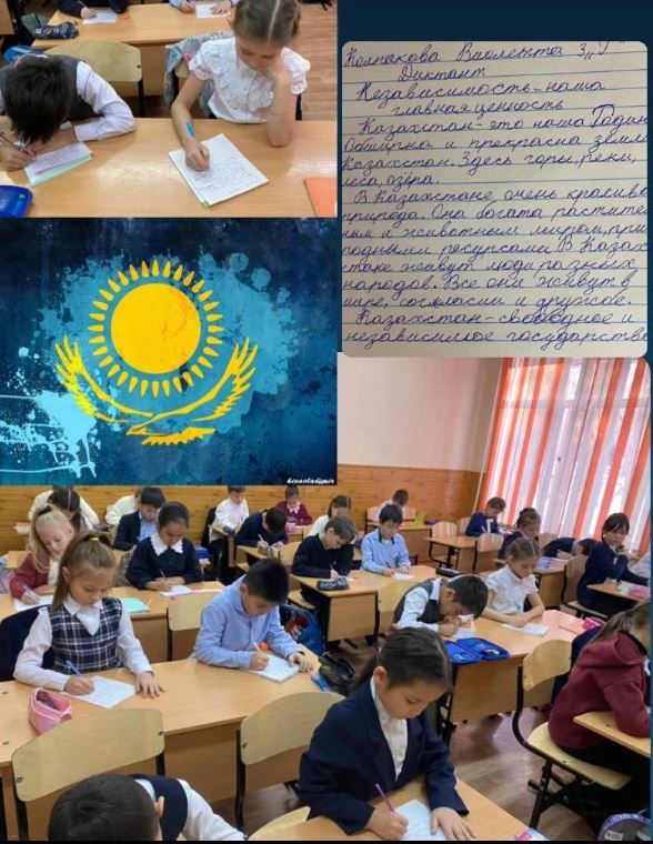 Сегодня ученики 4 "Д" класса написали диктант, посвященный дню Независимости Республики Казахстан.