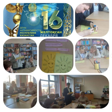 13.12.2022г. ко дню Независимости Республики Казахстан в библиотеке был проведён круглый стол " Независимость" с учащимися 9 "А" класса.