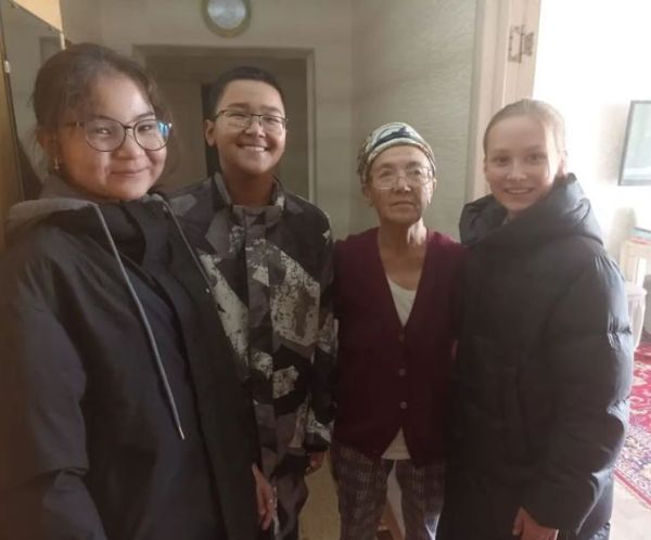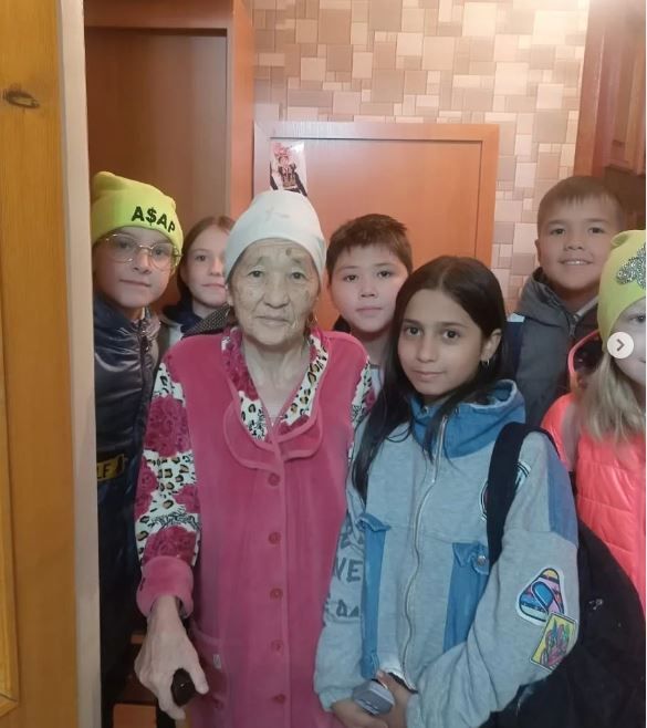 Учащиеся 5 "В" класса поздравили труженицу тыла, Мукашеву Нурзию, с Днём пожилых людей. Пожелали здоровья и долгих лет. Классный руководитель Свинцицкая Т.Ю.