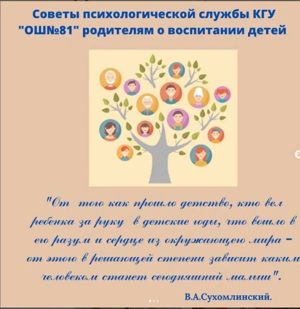 В рамках Международного Дня семьи психологической службой КГУ ОШ № 81 с целью повышения педагогической грамотности родителей в воспитании детей были подготовлены рекомендации .