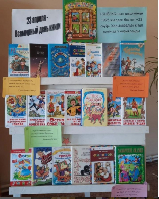 23 сәуір - Дүниежүзілік кітап және авторлық құқық күні. Осы атаулы күнге орай мектеп кітапханасында кітап көрмесі ұйымдастырылды. ___________________ 23 апреля - Всемирный день книги и День защиты…