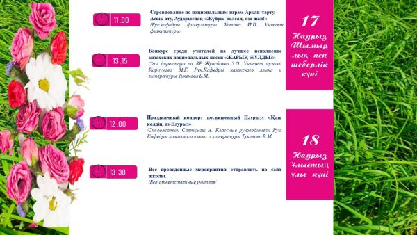 Наурыз мерекесіне жоспар