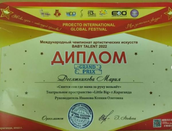 Гран при в Международном чемпионате артистических искусств. Караганда 2022г.