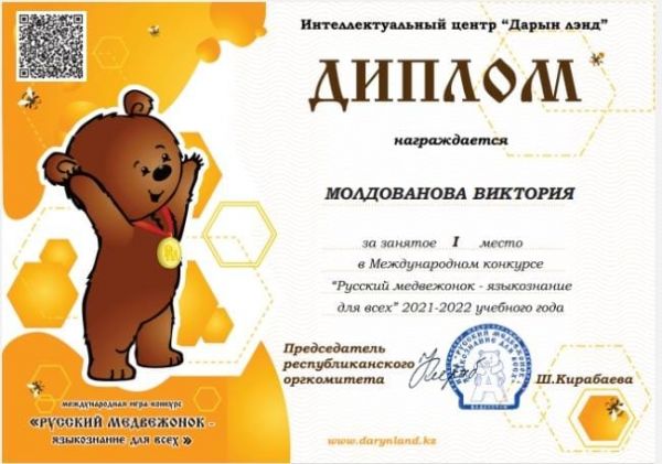 Поздравляем учениц 11 "В" класса Захарову Софью и Молдованову Викторию с победой в Международном конкурсе "Русский медвежонок"!!!!!! Показали отличные знания по русскому языку! У…