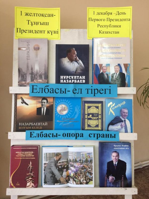 В читальном зале школьной библиотеки организована книжная выставка "ЕЛБАСЫ-ЕЛ ТІРЕГІ", "ЕЛБАСЫ-ОПОРА СТРАНЫ" посвященная Дню Первого Президента Республики Казахстан.