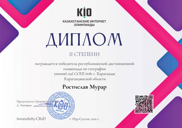 Погребная Ангелина, ученица 10 А класса заняла 1 место на Республиканском конкурсе научных проектов по химии "Лидеры современного Казахстана", приуроченный к 30-летию независимости Республ…