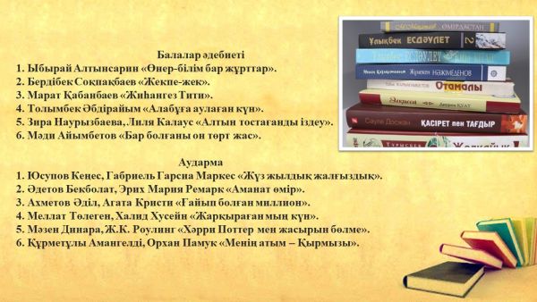 Биылғы жылы ел Тәуелсіздігінің 30 жылдығына орай, жалпыхалықтық оқуға «Тәуелсіздігіміздің 30 жылдығына – 30 кітап» рухани-мәдени акциясы ұсынылып, поэзия, проза, драматургия, балал…