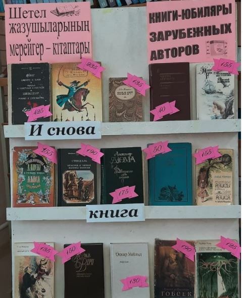 Мектеп кітапханасында шетел жазушыларының мерейгер кітаптарына арналған көрме жасақталды. Бұл көрмеде көп оқылған және танымал кітаптар ұсынылған. В школьной библиотеке оформлена книжная выставк…