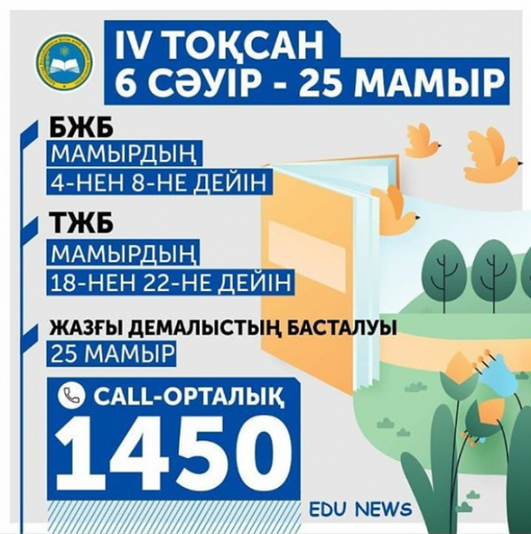 Еліміз бойынша 6 сәуір күні басталған қашықтан оқыту жалғасуда. IV тоқсанда оқушылар бір БЖБ мен бір ТЖБ тапсыратын болады. Сондай-ақ, қорытынды аттестаттау емтихандары өткізілмейді, аттестатқа ж…