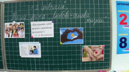 Сегодня в КГУ "СОШ №81" прошел общереспубликанский открытый урок по самопознанию "Любовь-основа жизни"